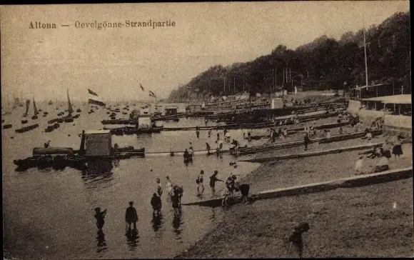 Ak Hamburg Altona, Oevelgönne Strandpartie, Badegäste