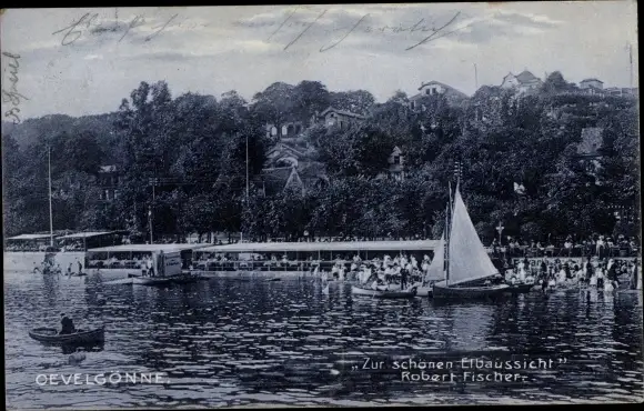 Ak Hamburg Altona Oevelgönne, Zur schönen Elbaussicht, Boote