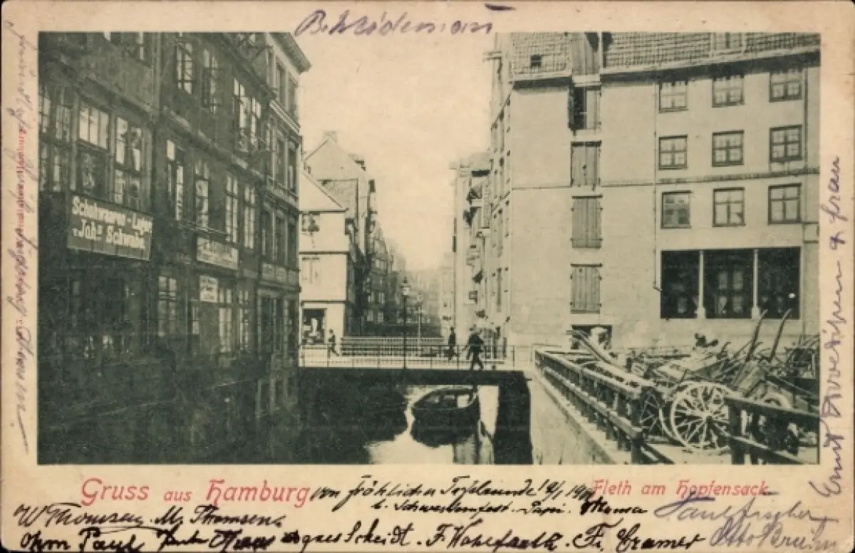 Ak Hamburg Altstadt, Fleet am Hopfensack, Schuhwarenlager Johs. Schwabe