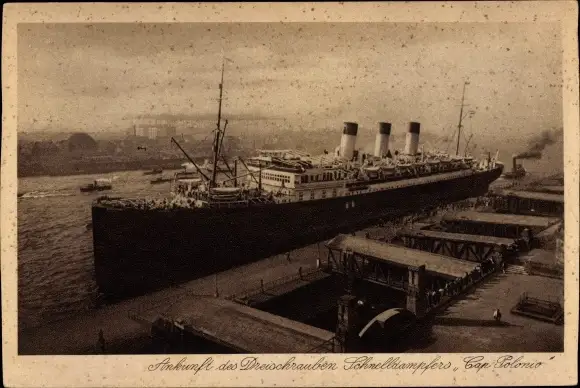 Ak Hamburg, Ankunft des Dreischrauben Schnelldampfers Cap Polonio der HSDG