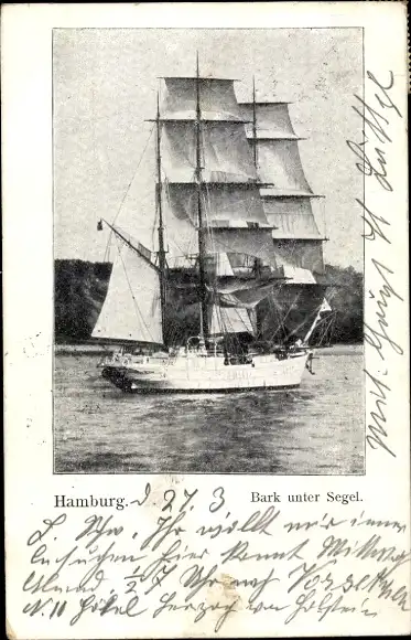 Ak Hamburg, Bark unter Segel, Segelschiff