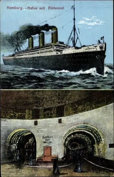 Ak Hamburg Bezirk Mitte Steinwerder, Elbtunnel, Dampfer