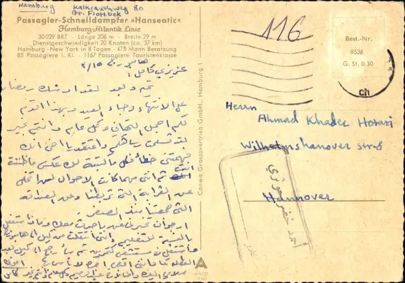 Ak Hamburg, Dampfer Hanseatic, Hamburg Atlantic Line