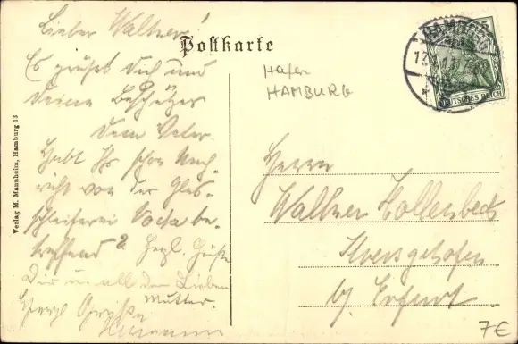 Ansichtskarte, Postkarte, Hafen, Schiffe, Boote, Dampfer, Boot