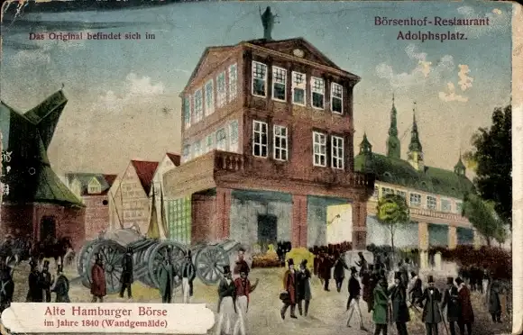 Ak Hamburg, Das Börsenhof Restaurant am Adolphsplatz, Wandgemälde