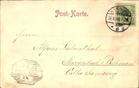 Zustand, siehe Scan, gelaufen, 1898 - ca 14 cm X 9 cm