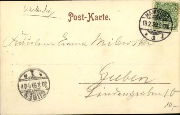 Zustand, siehe Scan, gelaufen, 1899 - ca 14 cm X 9 cm