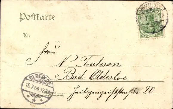 Zustand, siehe Scan, gelaufen, 1904 - ca 14 cm X 9 cm