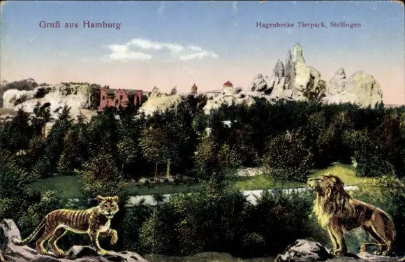 Ak Hamburg Eimsbüttel Stellingen, Hagenbecks Tierpark, Löwe, Tiger