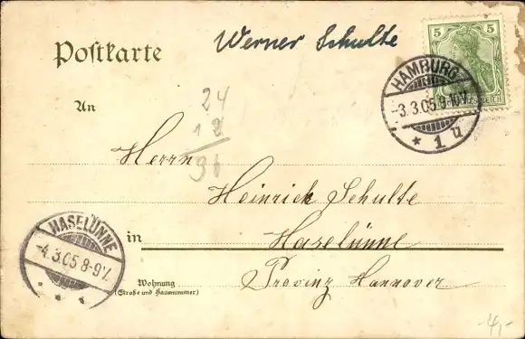 Zustand, siehe Scan, gelaufen, 1905 - ca 14 cm X 9 cm