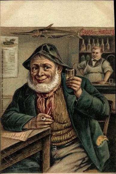 Ak Hamburg, Fischer mit Pfeife in einem Gasthaus
