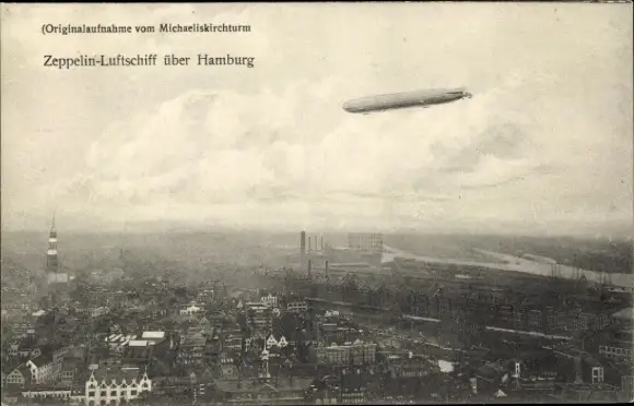 Ak Hamburg, Gesamtansicht, Zeppelin-Luftschiff