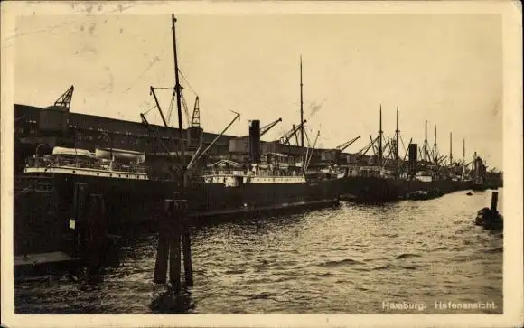Ansichtskarte, Postkarte, Hafen, Schiffe, Boote, Dampfer, Boot