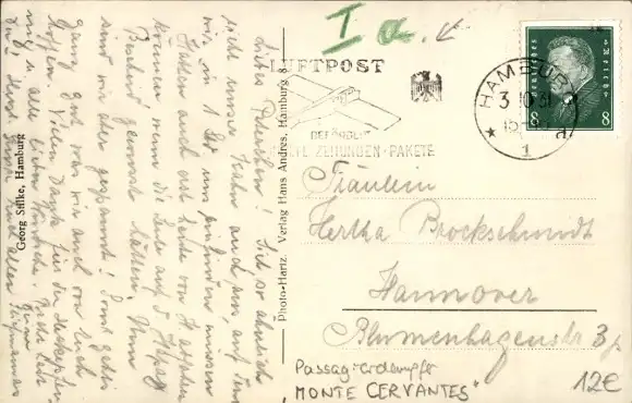 Ak Hamburg, Hafen, Dampfer M.S. Monte Cervantes, HSDG