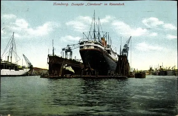 Ak Hamburg, Hafen, HAPAG Dampfer Cleveland im Riesendock