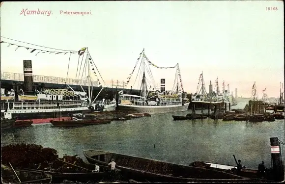 Ak Hamburg, Hafen, Partie am Petersenquai, Dampfer, Boote