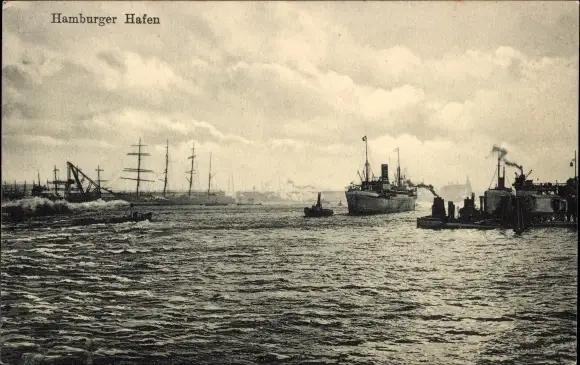 Ansichtskarte, Postkarte, Hafen, Schiffe, Boote, Dampfer, Boot