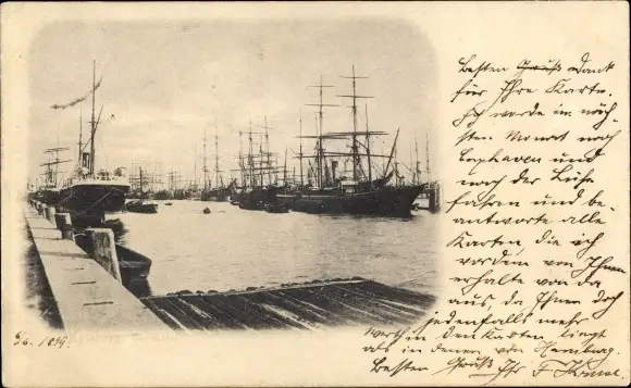 Ansichtskarte, Postkarte, Hafen, Schiffe, Boote, Dampfer, Boot