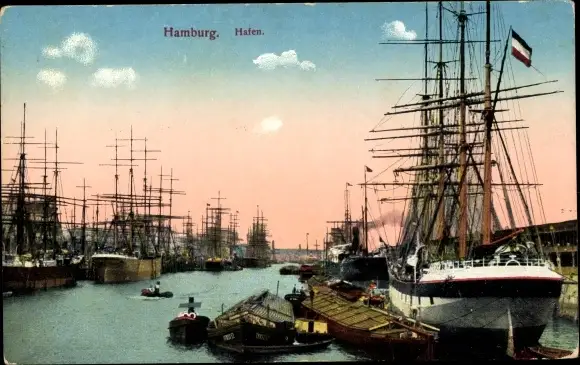 Ansichtskarte, Postkarte, Hafen, Schiffe, Boote, Dampfer, Boot