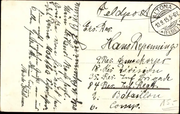 Zustand, siehe Scan, gelaufen, 1915 - ca 14 cm X 9 cm