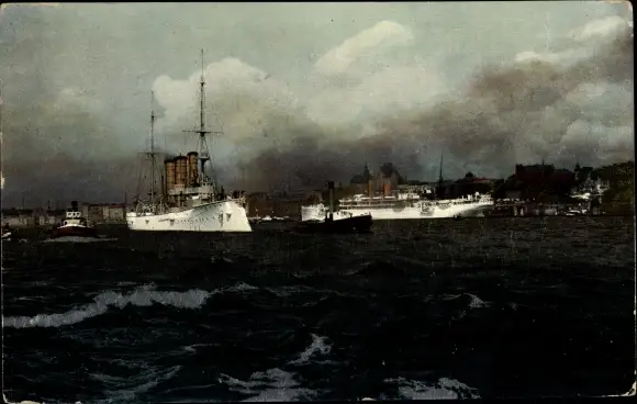 Ansichtskarte, Postkarte, Hafen, Schiffe, Boote, Dampfer, Boot