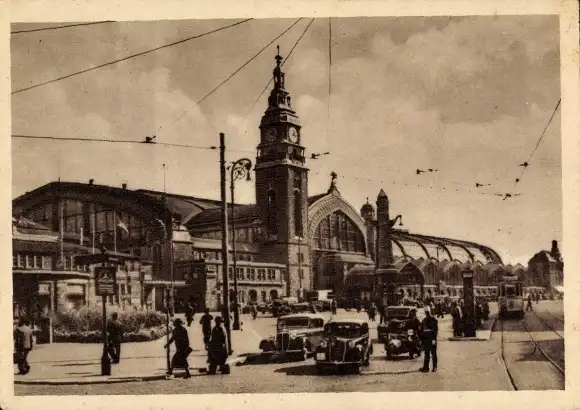Ak Hamburg, Hauptbahnhof, Autos, Straßenbahn