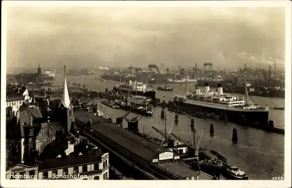 Ak Hamburg, Jonashafen, Dampfschiffe
