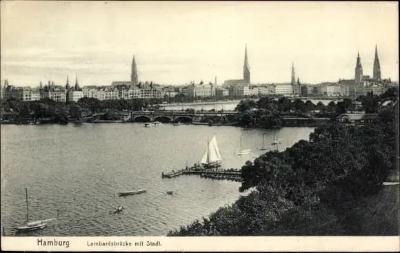 Ak Hamburg, Lombardsbrücke mit Stadt