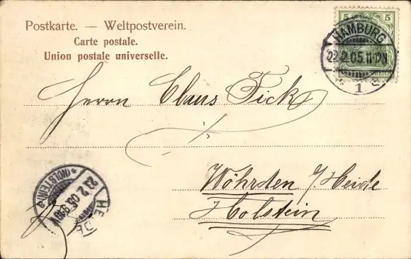 Zustand, siehe Scan, gelaufen, 1905 - ca 14 cm X 9 cm