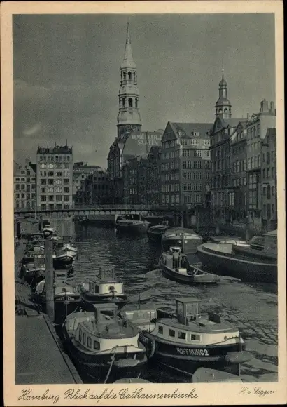 Ak Hamburg Mitte Altstadt, Catharinenkirche, Boote