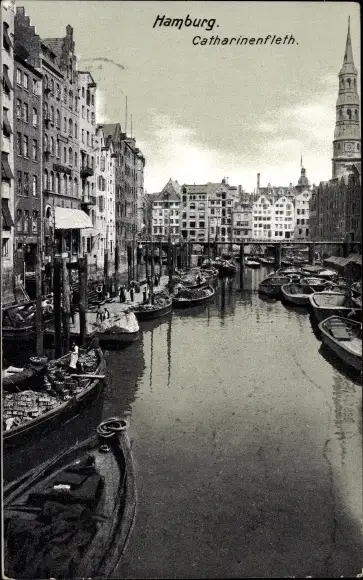 Ak Hamburg Mitte Altstadt, Catherinenfleth, Boote