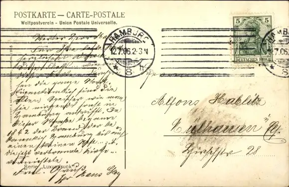 Zustand, siehe Scan, gelaufen, 1906 - ca 14 cm X 9 cm