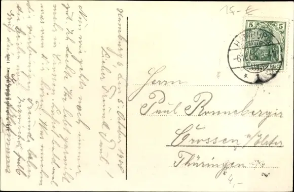 Zustand, siehe Scan, gelaufen, 1908 - ca 14 cm X 9 cm