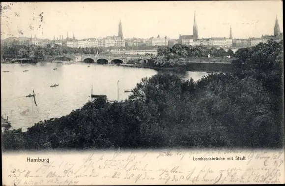 Ak Hamburg Mitte Altstadt, Lombardsbrücke mit Stadt