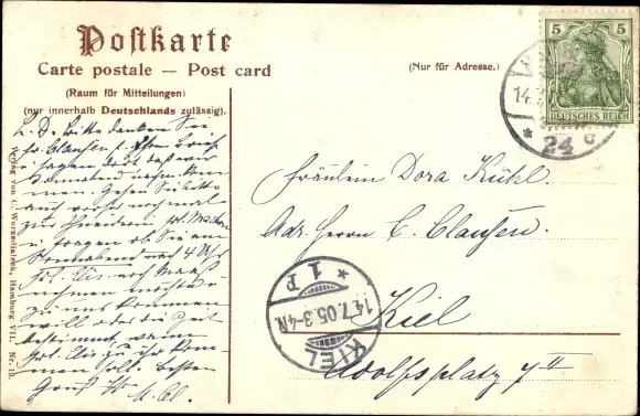 Zustand, siehe Scan, gelaufen, 1905 - ca 14 cm X 9 cm