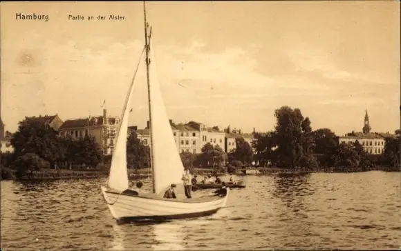 Ak Hamburg Mitte Altstadt, Partie an der Alster, Segelboot