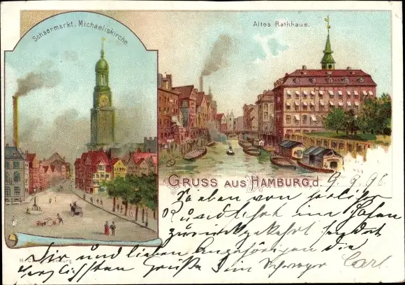 Ak Hamburg Mitte Altstadt, Schaarmarkt, Altes Rathaus, Michaeliskirche