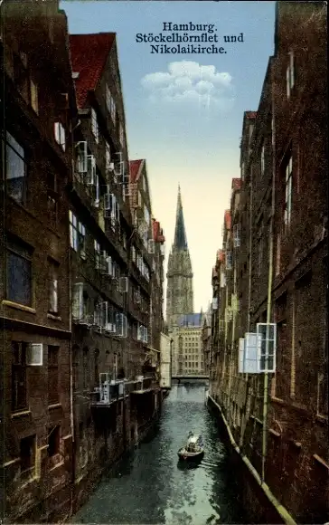 Ak Hamburg Mitte Altstadt, Stöckelhörnflet, Nikolaikirche