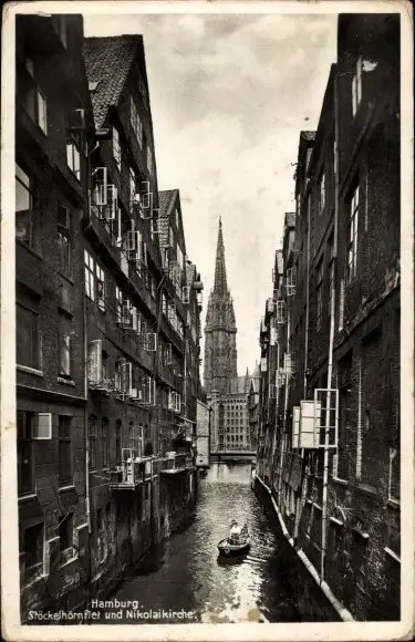 Ak Hamburg Mitte Altstadt, Stöckelhörnflet und Nikolaikirche