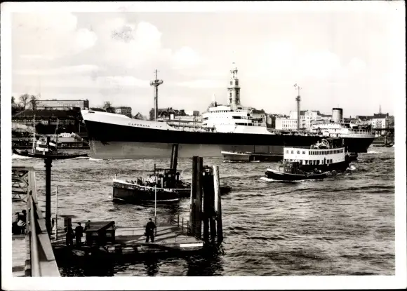 Ansichtskarte, Postkarte, Hafen, Schiffe, Boote, Dampfer, Boot