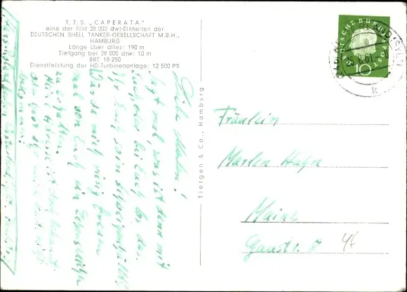 Ak Hamburg Mitte Altstadt, TTS Caperata, Shell Tanker, Tankschiff, Im Hafen vor Anker