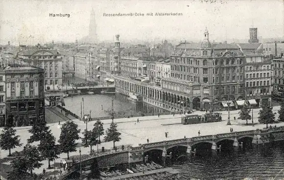 Ak Hamburg Mitte Neustadt, Alsterarkaden, Reesendammbrücke