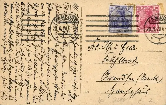 Zustand, siehe Scan, gelaufen, 1920 - ca 14 cm X 9 cm