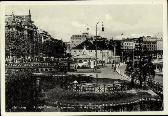 Ak Hamburg Mitte Neustadt, Alsterpavillon, Anlagen beim Jungfernstieg