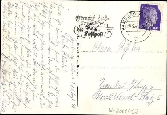 Zustand, siehe Scan, gelaufen, 1941 - ca 15 cm X 10 cm