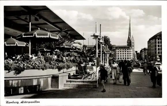 Ak Hamburg Mitte Neustadt, Alsterpavillon, Kirchturm