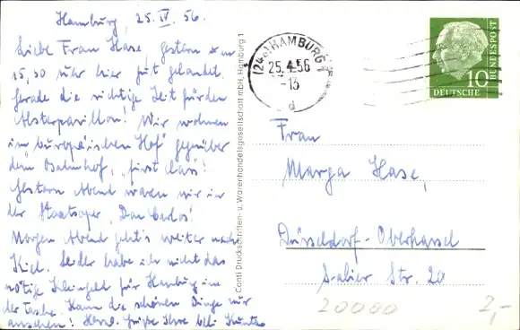 Zustand, siehe Scan, gelaufen, 1956 - ca 14 cm X 9 cm