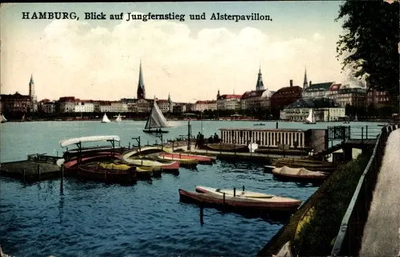 Ak Hamburg Mitte Neustadt, Blick auf Jungfernstieg u. Alsterpavillon