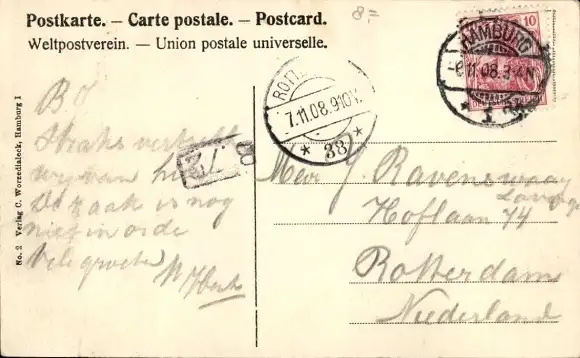 Zustand, siehe Scan, gelaufen, 1908 - ca 14 cm X 9 cm