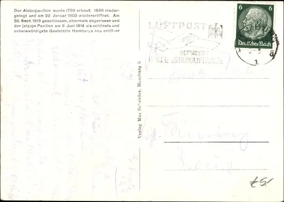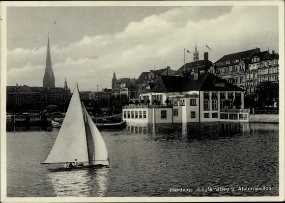 Ak Hamburg Mitte Neustadt, Jungfernstieg, Alsterpavillon, Segelboot, Kirchturm